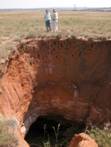 This is a much more common phenomenon than one would expect. In areas where high extraction mining (or even oil extraction) was practiced, the cracks surrounding the subsided area re-open after several years or even decades, resulting in pot holes of different dimensions. |